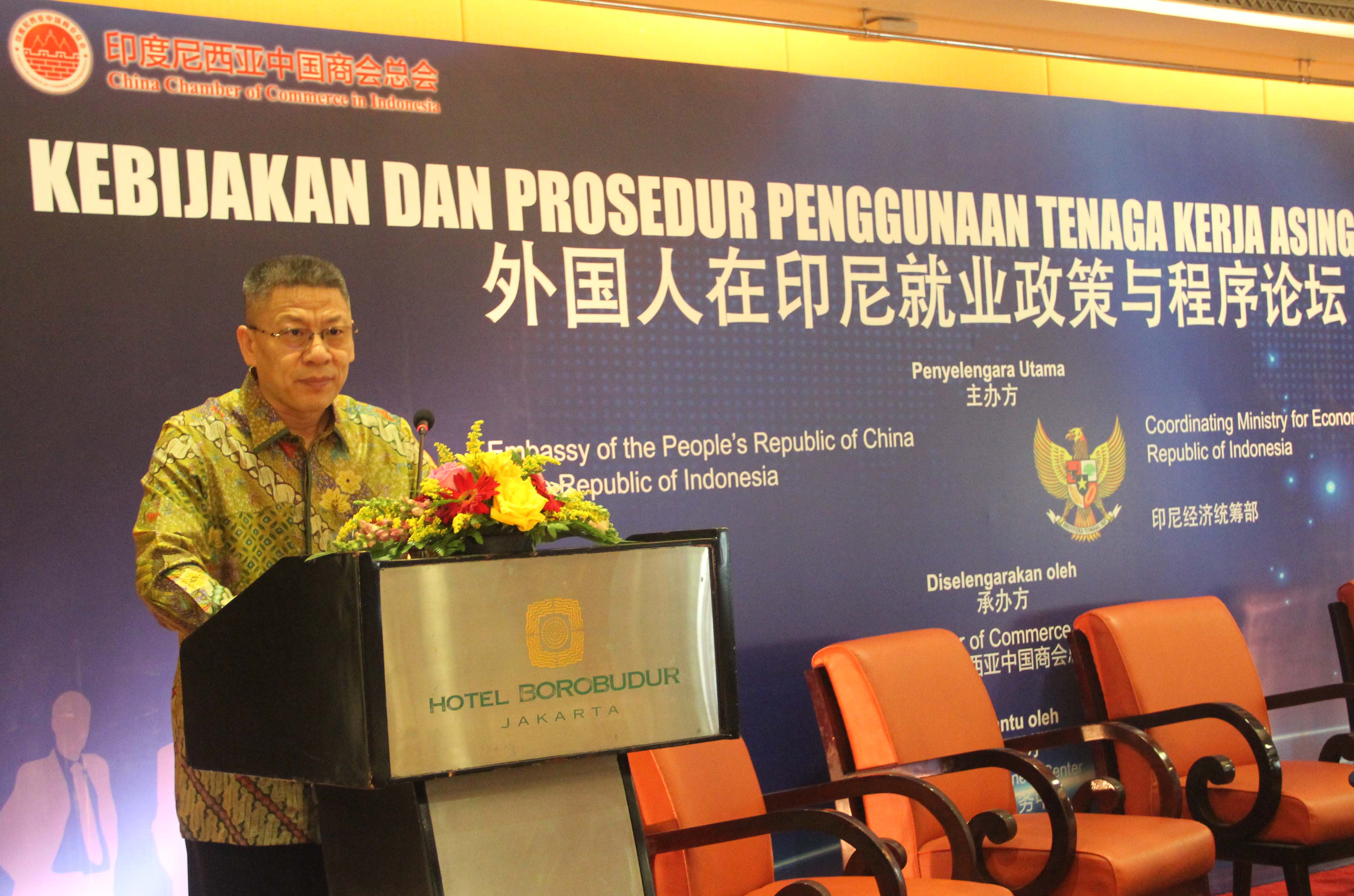 7月17日,由中国驻印尼大使馆和印尼经济统筹部联合主办的“外国人在印尼就业政策与程序论坛”在雅加达举行。中国驻印尼大使馆经商参处公使衔参赞王立平出席论坛并致辞。